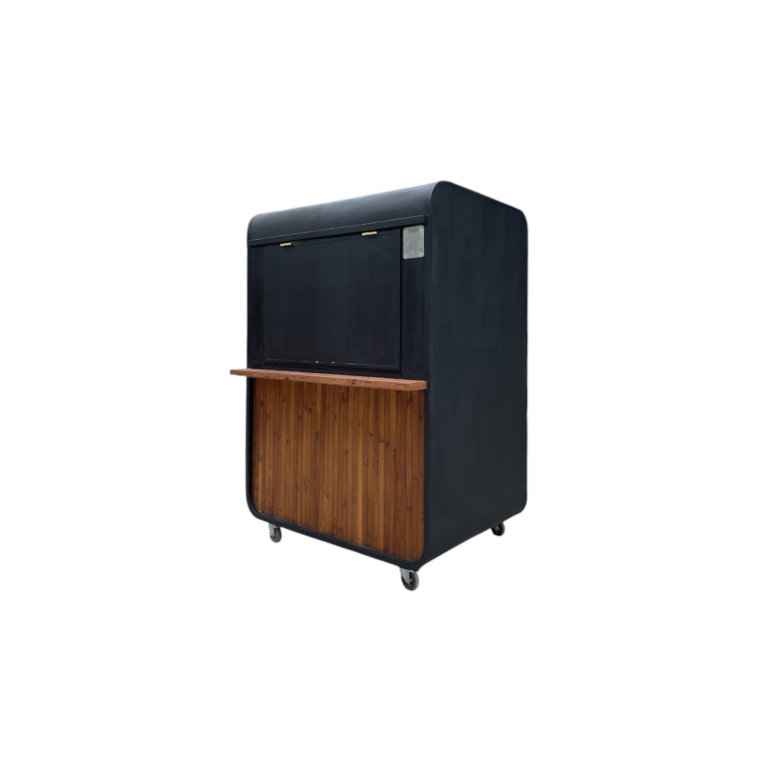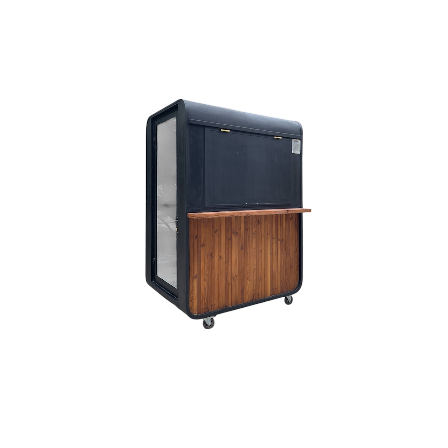 بدنهی کافه کیوسک از فایبرگلاس مقاوم و چوب ترمووود ساخته شده است که هم زیبایی طبیعی چوب را دارد و هم مقاومت در برابر رطوبت و شرایط محیطی را تضمین میکند. ظاهر آن به راحتی قابل شخصیسازی است و میتوان رنگ بدنه، طرح کلی و حتی استیکرها را طبق سلیقه شما تغییر داد بدون هیچ هزینه اضافه.
