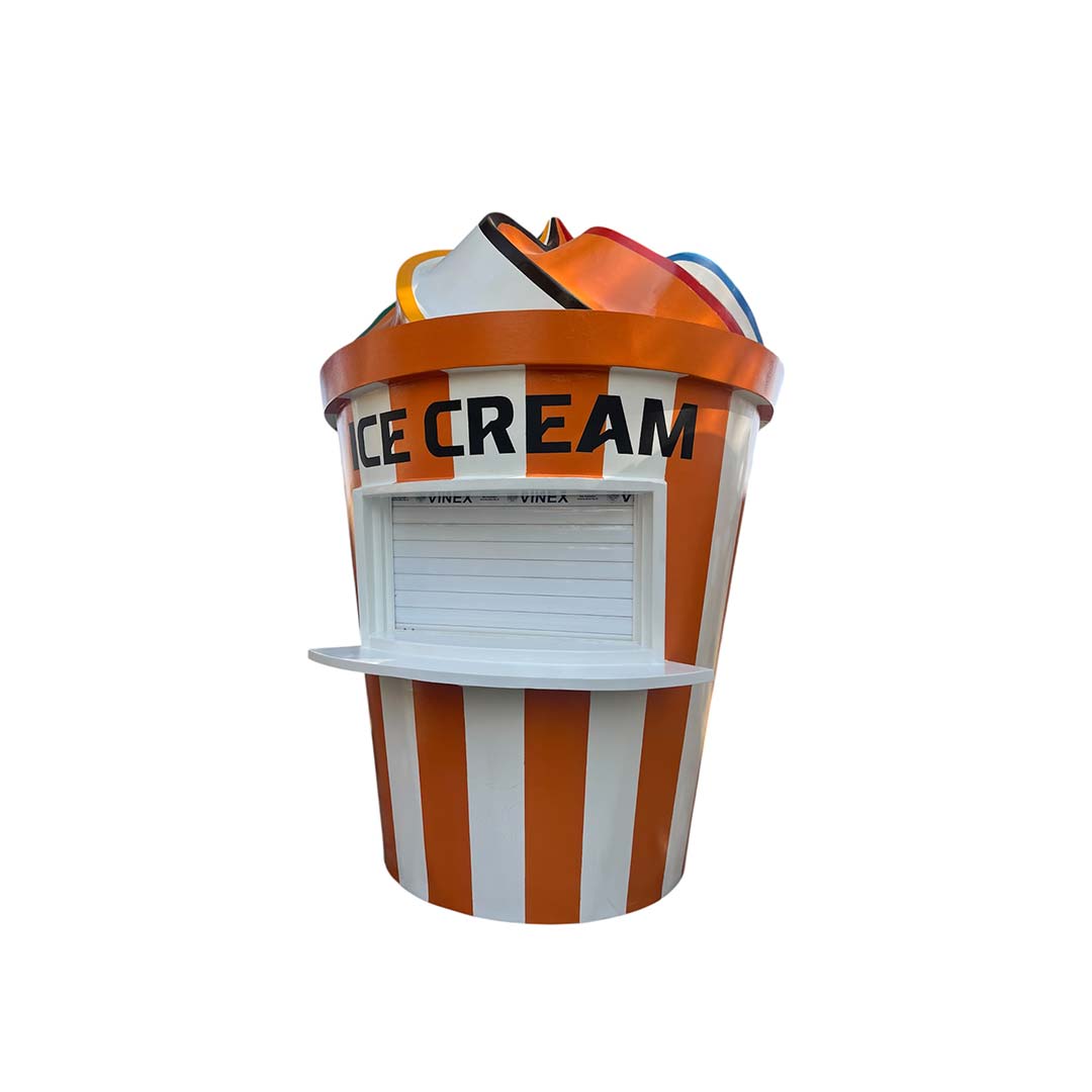 کیوسک بستنی دالیا با طراحی شبیه لیوان بستنی، یک انتخاب جذاب و چشمگیر برای فروش سیار بستنی، نوشیدنیهای سرد، اسموتی و … در فضاهای باز است.