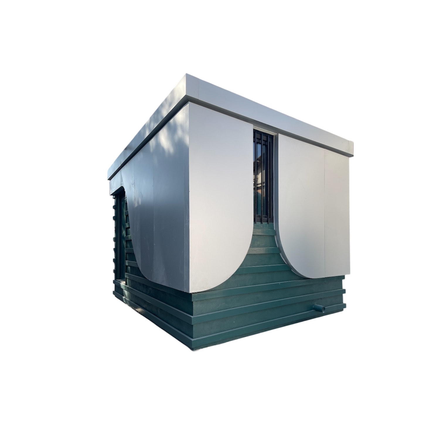 کف واحد با سرامیک مقاوم اجرا شده و دیوارهها تا سقف کاشیکاری کامل دارند که علاوه بر زیبایی، نظافت و بهداشت را آسان میکند. نمای خارجی محصول با کامپوزیت اجرا میشود که ظاهری مدرن و مقاوم در برابر شرایط محیطی ایجاد میکند.
