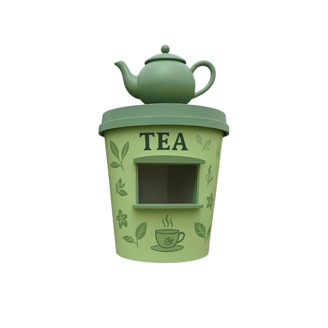 کیوسک طرح چای یکی از خاصترین محصولات دالیا است که با الهام از لیوان نوشیدنی و المانهای برگ چای طراحی شده است. این کیوسک به شکل لیوانی ساخته شده و ظاهری خلاقانه و چشمگیر دارد که در نگاه اول توجه رهگذران را جلب میکند.